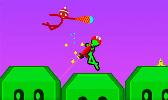 - En modo un jugador, derrota a los stickmen enemigos en batallas rápidas con escenarios que cambian constantemente.