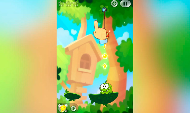 - Arrastra para simular deslizamientos. Tu objetivo es llevar el caramelo hasta Om Nom recolectando estrellas y cumpliendo tareas secundarias.