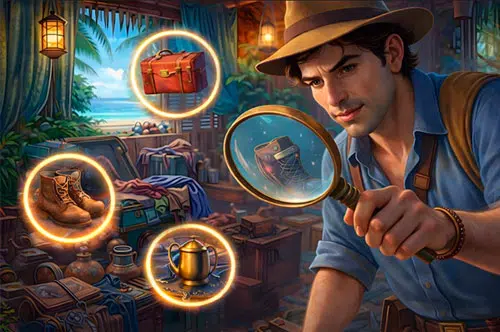 Hidden Objects: Island Secrets te lleva a una isla llena de misterio donde la magia y el tiempo se mezclan en una aventura relajante y adictiva. Todo comienza cuando un cristal mágico se activa y provoca un caos inesperado: objetos y pistas quedan esparcidos entre distintas épocas, como si la historia se hubiera roto en pedazos. Tu misión es explorar escenarios del pasado y del presente, recorrer ruinas antiguas, rincones escondidos y lugares llenos de detalles, mientras descubres qué está pasando y por qué la isla guarda tantos secretos.