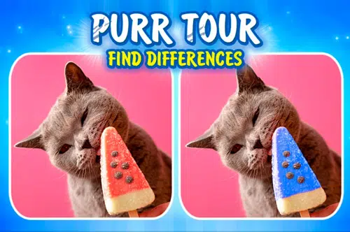 Purr Tour Find Differences te invita a acompañar a Murmeow, un simpático gato viajero, en una aventura tranquila y llena de encanto donde la observación es la clave. A lo largo del recorrido descubrirás escenarios coloridos y detallados que esconden pequeñas diferencias casi imperceptibles. Cada nivel propone un nuevo reto visual que pone a prueba tu atención y tu capacidad para detectar detalles antes que los demás.