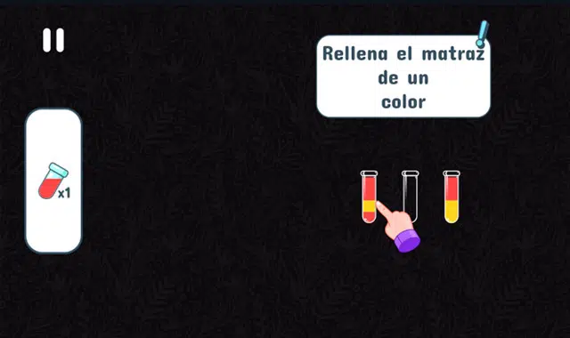 - Puedes mover una botella únicamente si el frasco de destino está vacío o contiene el mismo color en la parte superior.