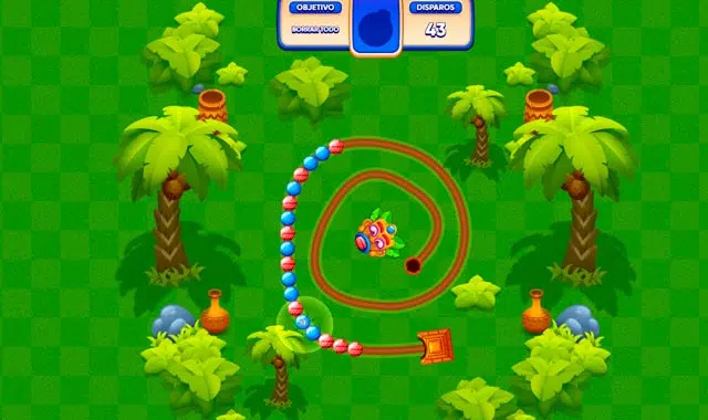 - Apunta y lanza bolas de colores hacia la cadena en movimiento.